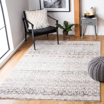 The elegant grey and beige tones create a serene backdrop that harmonizes with any decor, while the intricate patterning provides a subtle, yet engaging visual texture. The design is a melange of distressed traditional motifs, which bring a timeless appeal to any room, striking a fine balance between classic and contemporary styles.