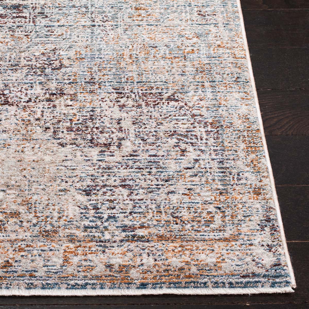 Looking closely at the rug's pattern, it features a delicate balance of distressed and faded elements, evoking the charm of vintage textiles with a modern twist. This subtle design adds depth and character to your flooring, making it a statement piece that doesn't overwhelm your space.