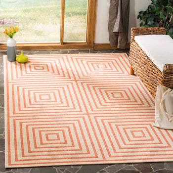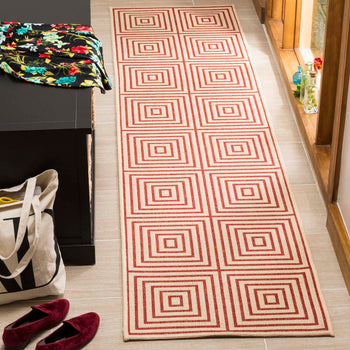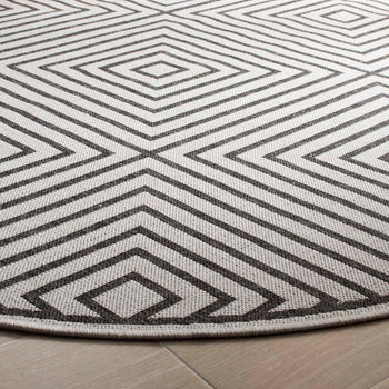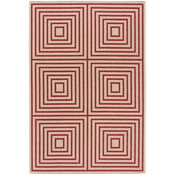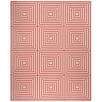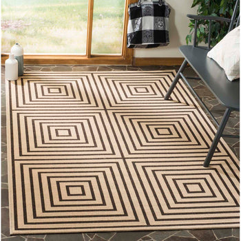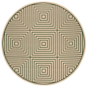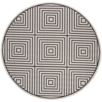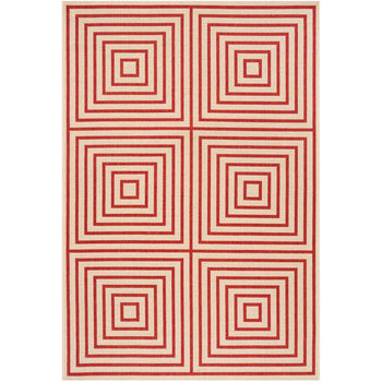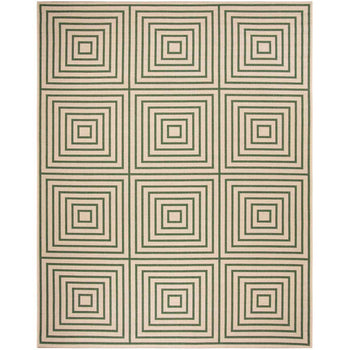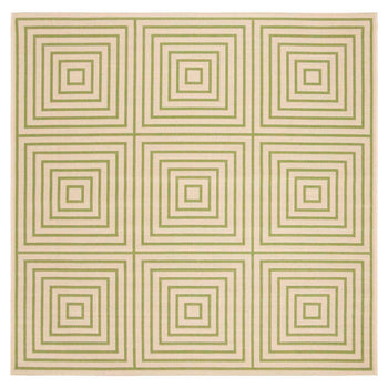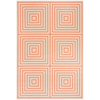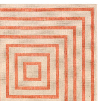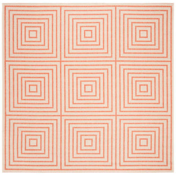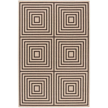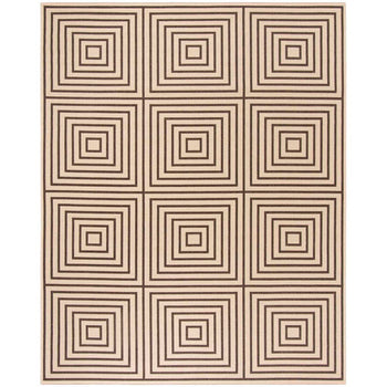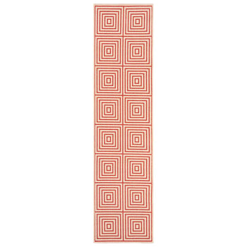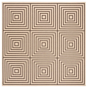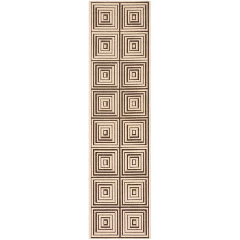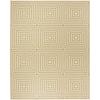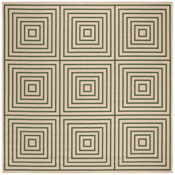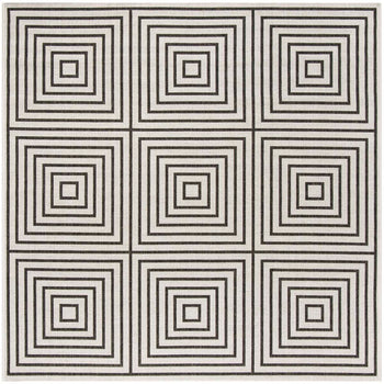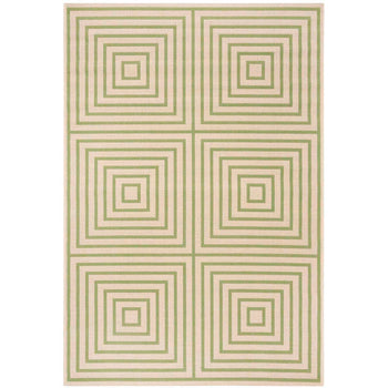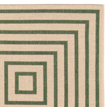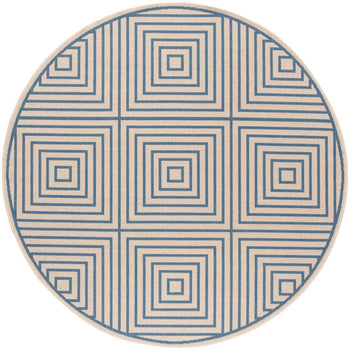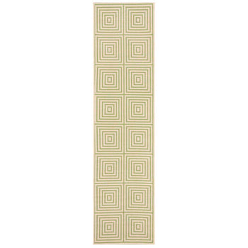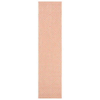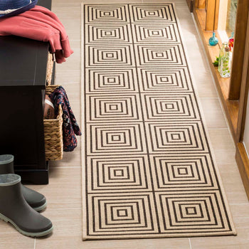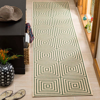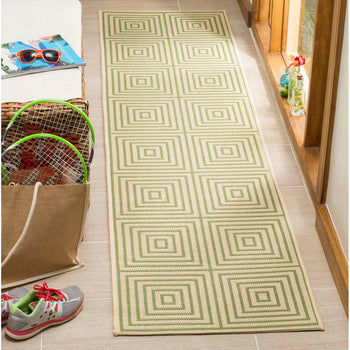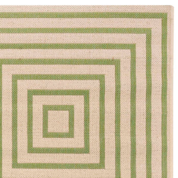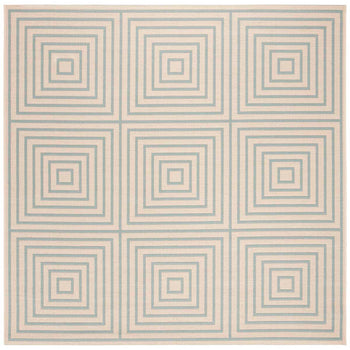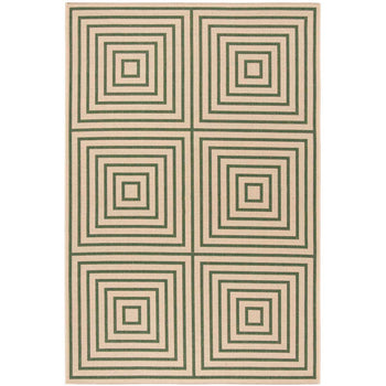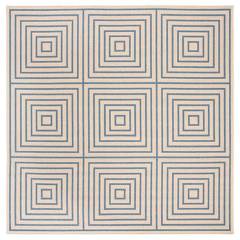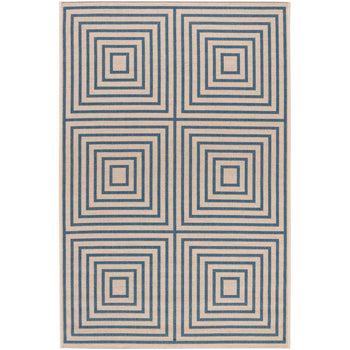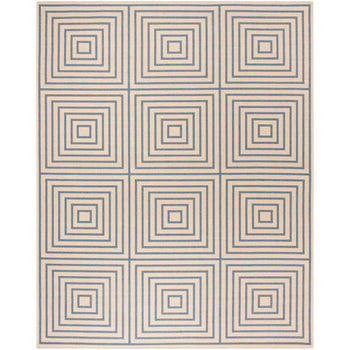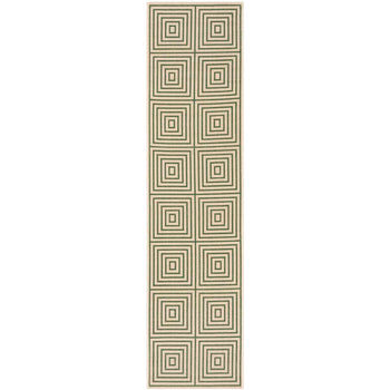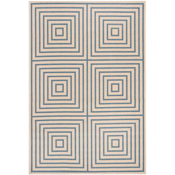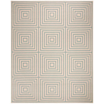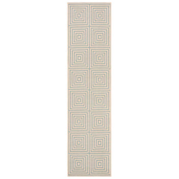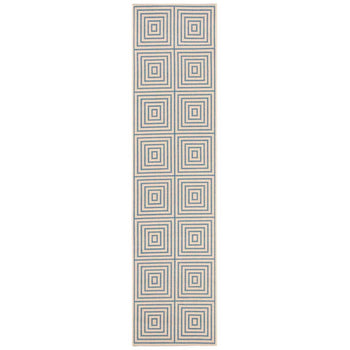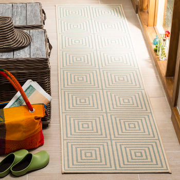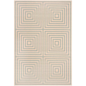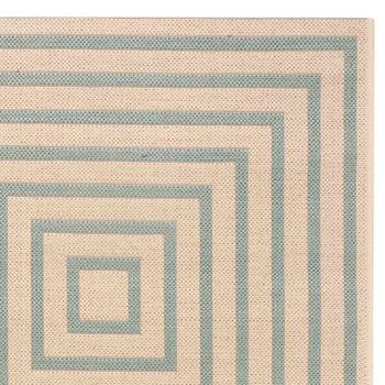 Crafted from 100% Polypropylene Pile, this rug is not only visually appealing but also built to last, boasting easy maintenance and exceptional resistance to the elements. Each pattern block on the rug showcases a harmonious fusion of cream and aqua hues that create concentric geometric squares, offering a touch of sophistication and visual interest to any corridor, entryway, or living space.
