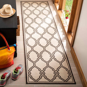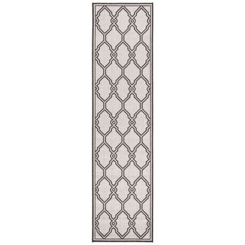 Elevate your indoor or outdoor space with the exquisite design of our UKRAINE-made area rug. Sized at a versatile 2'-2" X 8', this runner is a perfect fit for hallways, kitchens, or outdoor patios, providing a blend of comfort and sophistication. The subtle interplay of light grey and charcoal hues creates an elegant trellis pattern that will complement any decor.