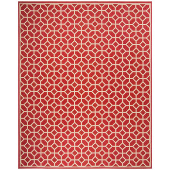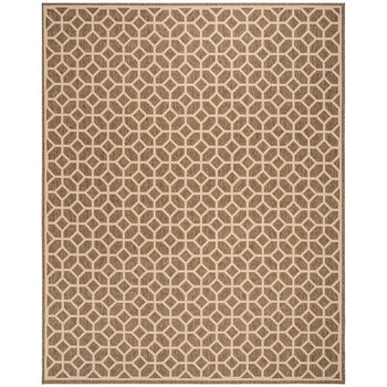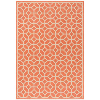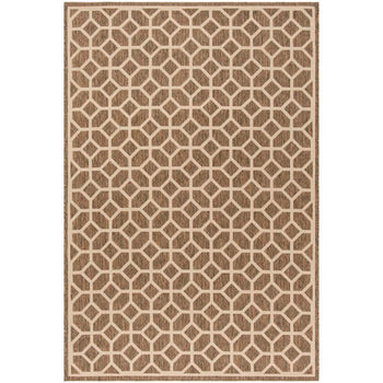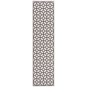Constructed from 100% Polypropylene Pile, this runner is not only durable but ideal for both indoor and outdoor styling, able to withstand the rigors of high traffic and the elements, all while maintaining its charm. The sophisticated geometric pattern, as visible in the image, features an interlocking design that brings a contemporary flair and visual interest to any area it graces.