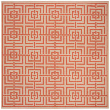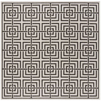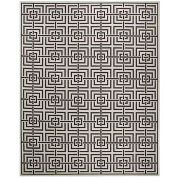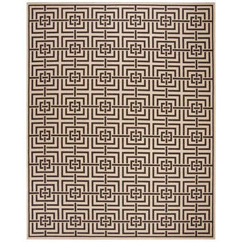 This area rug features a compelling geometric pattern that skillfully interconnects squares and lines to create a dynamic maze-like design, certain to captivate attention and become a focal point in any area it adorns. The intricate pattern is closely observed in the image for your reference.