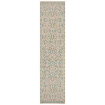 Elevate your space with the timeless elegance of our exquisite Aqua/Cream Runner Area Rug, carefully crafted to add a touch of sophistication and charm to any hallway or narrow space in your home. Sized at a versatile 2'-2" X 8', this runner rug is a perfect blend of style and functionality, creating an inviting path in high-traffic areas while protecting your floors.