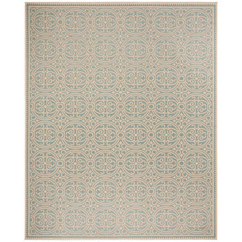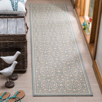 Each rug showcases an enchanting, classic pattern that draws inspiration from traditional designs, featuring intricate motifs that swirl gracefully across the cream background, accentuated by the soft, serene hue of aqua. This color combination emits a sense of tranquility and refined taste, seamlessly integrating with both modern and classic interiors.