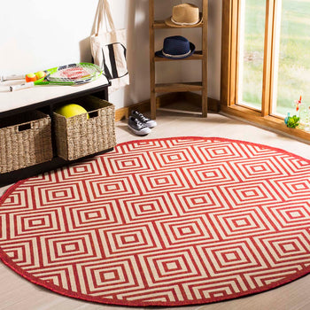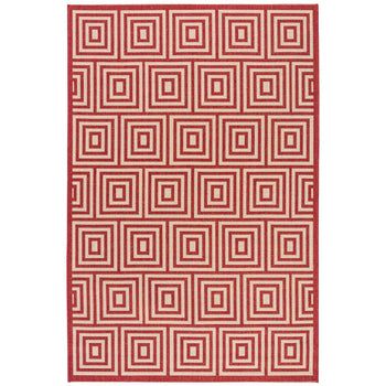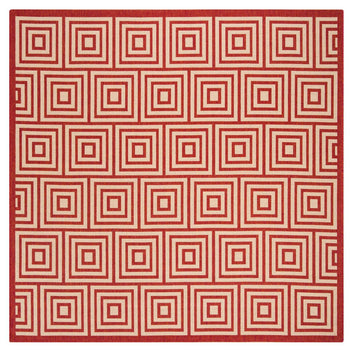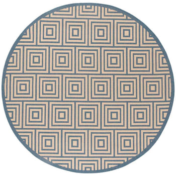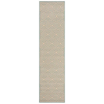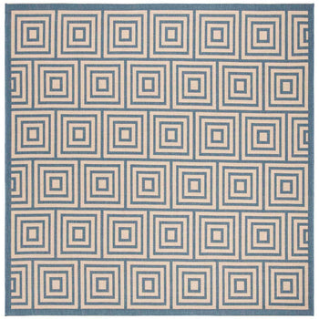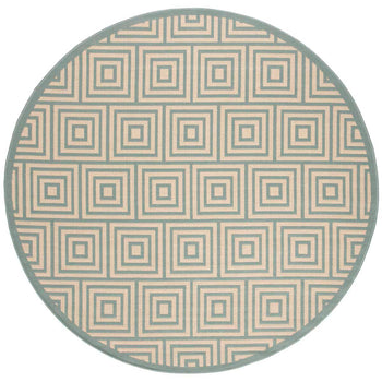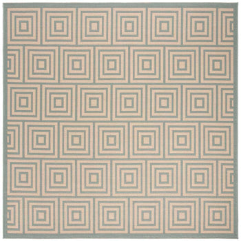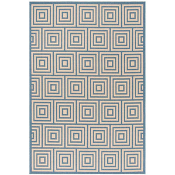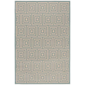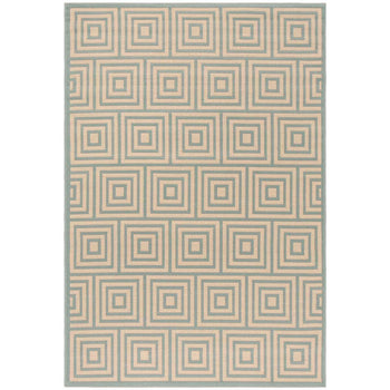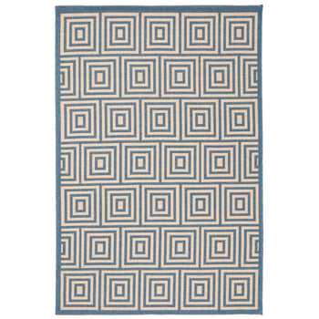 Embracing both indoor and outdoor lifestyles, the rug's versatility knows no bounds. Its UV resistance and easy-to-clean nature make it ideal for high-traffic areas, indoors and out. The sophisticated geometric pattern observed in the image, featuring an interplay of cream and aqua hues in eye-catching concentric squares, promises to complement a myriad of decor settings. This chic design element introduces a modernist approach while adding a serene aqua accent to your home's aesthetics.