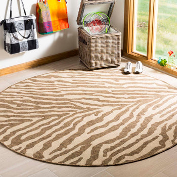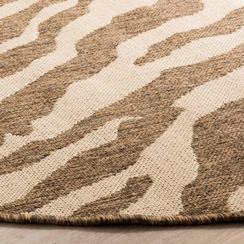 The rug showcases a captivating zebra-like pattern, boasting dynamic cream and beige tones that exhibit both modern aesthetic and natural appeal. This design is versatile enough to blend with various decors, from the contemporary chic to the classic traditional.