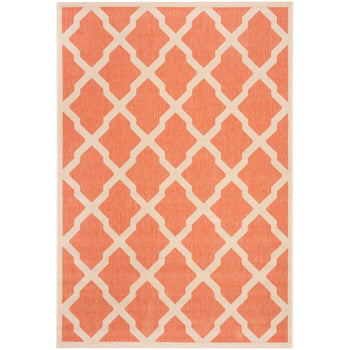 Elevate your living space with our elegantly styled 8' X 10' area rug. This large rectangular rug, boasting a classic geometric diamond pattern in a warm rust and soothing creme color palette, invites a blend of sophistication and comfort into your home. Power-loomed with precision, the rug features a well-defined pattern that adds character to any room, whether placed indoors or outdoors, thanks to its versatile style.