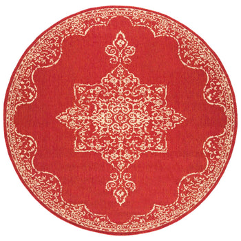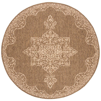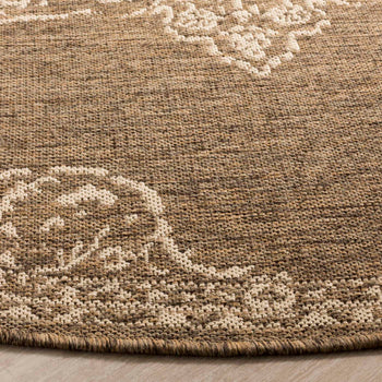Measuring a harmonious 6'-7" X 6'-7" in a perfectly round shape, this rug is an embodiment of symmetry and balance, ideal for creating a focal point in any room or outdoor area. The colors blend effortlessly into any decor, featuring a delicate Cream and Beige palette that radiates warmth and sophistication.