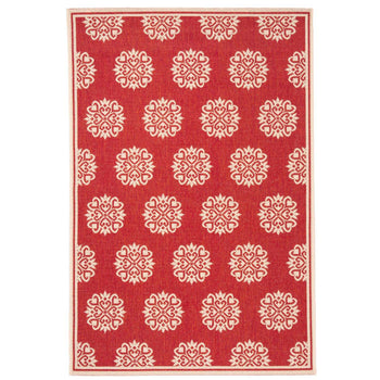 Boasting a classic color palette of deep red and soft creme, the rug showcases a symmetrical array of intricate damask patterns, providing a sense of regal sophistication and warmth to any room. Each design element has been meticulously power-loomed using 100% Polypropylene Pile, ensuring durability and longevity without sacrificing the plush texture underfoot.