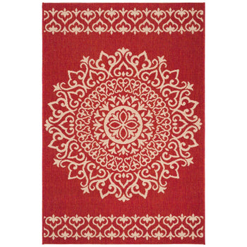 Elevate your home with the timeless elegance of our 4' x 6' Indoor/Outdoor Area Rug. Crafted with the utmost precision using a PowerLoomed technique, this rug boasts a robust 100% Polypropylene Pile, ensuring durability and ease of maintenance. The UKRAINIAN-made rug presents a beautiful red and creme color palette making it a versatile addition to any space.