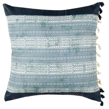 A piece of contemporary art, the Safavieh Linnet pillow has colors that pop and patterns bursting with life. More than an accessory it makes any sofa, chair or loveseat a modern masterpiece. A unique, powerful focal point, bold deep blue and grey designs move across the pillow while its dramatic line of tassels creates eclectic, breathtaking style.