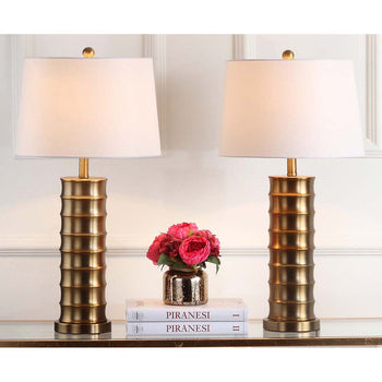 Safavieh Linus 28.5 Inch H Brass Column Table Lamp(Set of 2), LIT4319