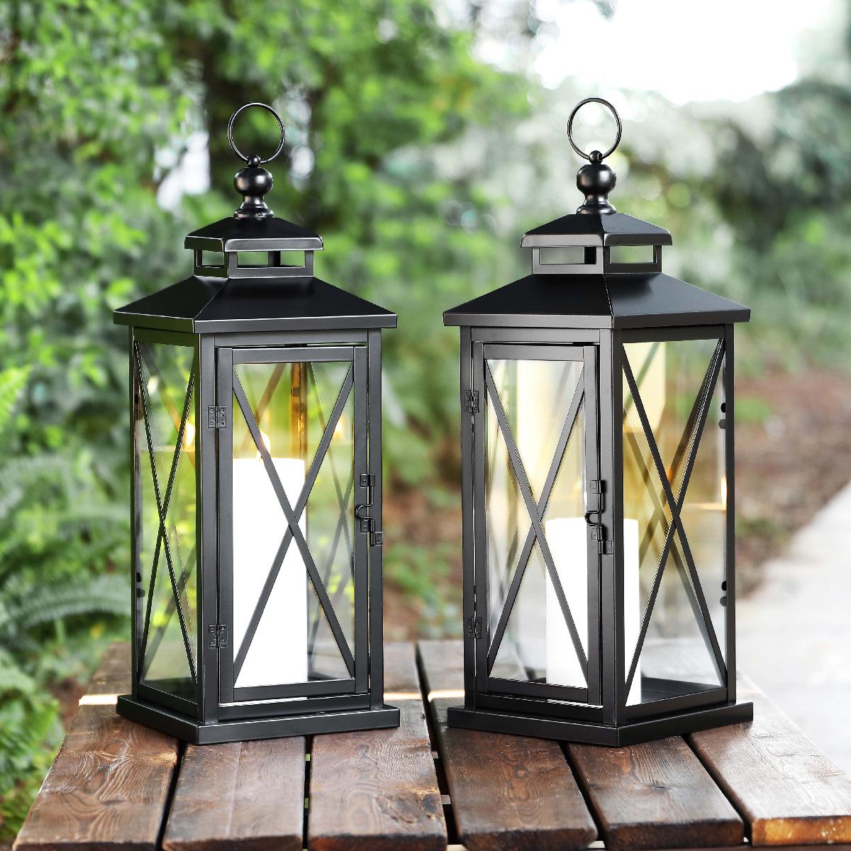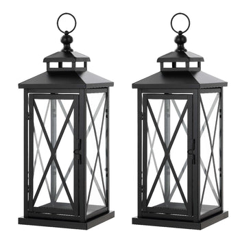 Uplift the ambiance and decor of outdoor spaces with Lirio outdoor lanterns. It recreates the classic vintage lamp with minimal yet elegant details. Standing tall with a pitched roof and rectangular body, the lantern is sure to make a bold and classy statement on its own or with the addition of warm candlelight. Available in a set of two with a convenient round handle, our lantern can be carried anywhere to serve as an eye-catching accent for your doorway, porch, or patio.