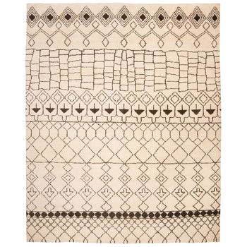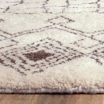 The delicate creme and rich brown hues interlace to create a warm and inviting palette that complements a variety of decors. Traditional yet modern, the rug's design features an elegant geometric pattern that draws inspiration from classic motifs, providing an air of sophistication and charm to your living space. Whether placed in your living room, bedroom, or study, this rug promises to enhance your home with its understated elegance and handcrafted beauty.