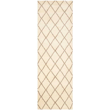 Sized at a convenient 2'-6" X 8', our runner is perfect for bringing warmth and style to narrow or elongated areas of your home. The soft creme hue serves as a sophisticated canvas for the elegant diamond trellis pattern in a complementary brown tone. This captivating design adds visual interest without overpowering, making it suitable for a variety of d?cor themes.
