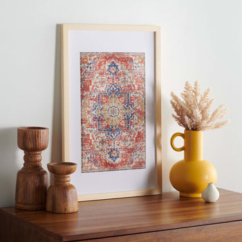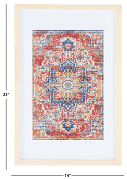 Give a dramatic and enchanting finishing touch to your walls with our prestigious Lonqu framed textile wall art. Inspired by rich and opulent Persian rugs, our wall art showcases striking symmetry and rhythmic patterns. The textile is adorned in a powerful combo of navy blue and red to warm up your walls with a touch of luxury. Elegantly encased within a wooden frame, our textile wall art remains a dramatic and charming addition to your home.