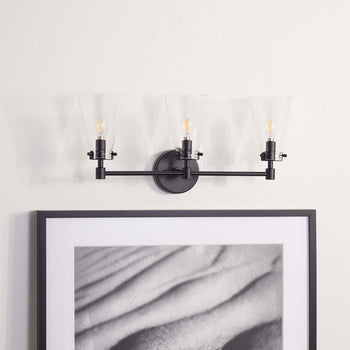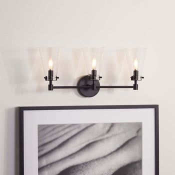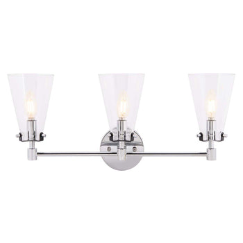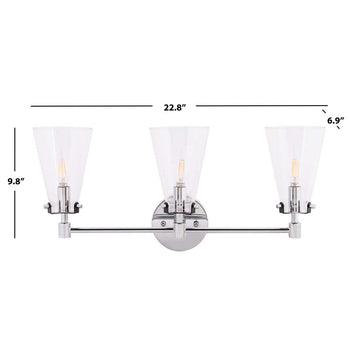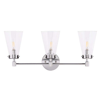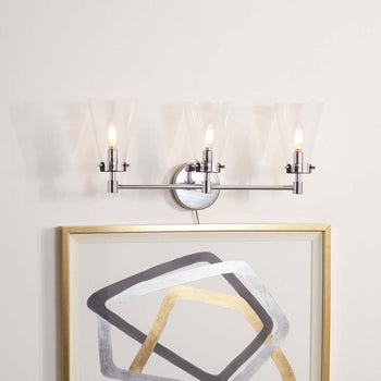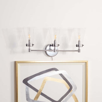 This Lonsen Vanity Sconce is the picture perfect way to illuminate your reflection with style and chic. Lonsen's three conic glass shades cast a soft glow, held aloft by a sleek chrome body designed to effortlessly accent any interior.
