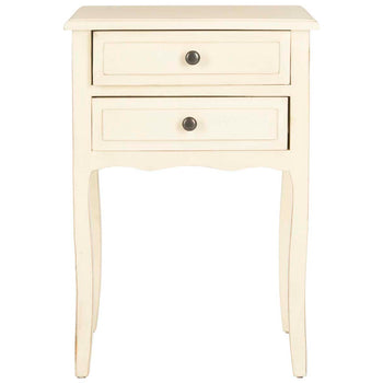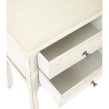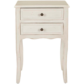 The gently scalloped apron and subtle cabriole legs of this Lori End Table bring perfect French farmhouse charm to any decor. Graceful and feminine, Lori's elm wood frame and ash grey finish give it the appearance of a well loved heirloom, lending Lori a warm, classic ambiance. Two drawers provide discreet storage.