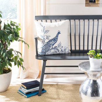 Set sail on exotic escapade with this captivating Safavieh Loving Pair Pillow. Its magnificent brilliant blue peacock is surrounded by enchanting flora and fauna that inspires the imagination. When tossed on the bed or sofa, its warm, neutral beige canvas