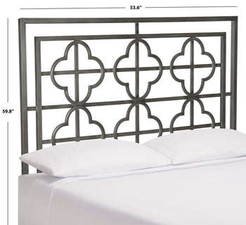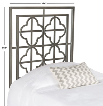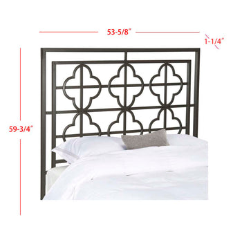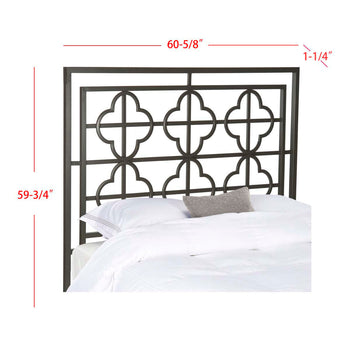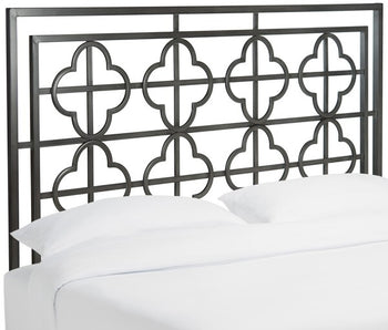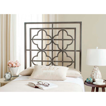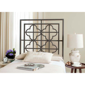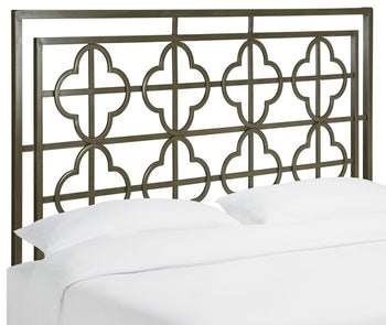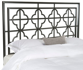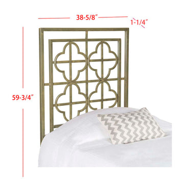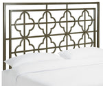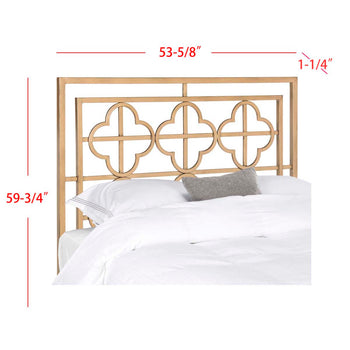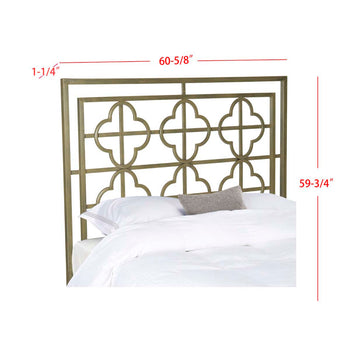 Designed for modern romance, this open quatrefoil motif headboard in an antique gold finish was inspired by the old world elegance of a Parisian hotel. Crafted of metal, this chic design is styled for a new take on the classic iron bed.