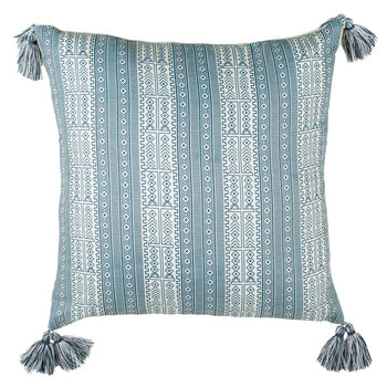 Timeless yet contemporary, the sophisticated flair of the Safavieh Lunette Pillow is an invitation to instant style for any armchair or sofa. Stripes dance across the cover with an elegant and graceful flow that blends its geometric lines with perfectly paired white and blue patterns. Four sweet tassels bring out its inner diva.