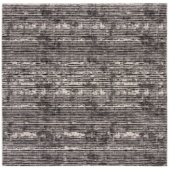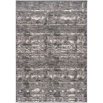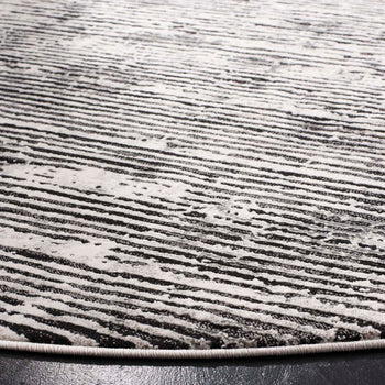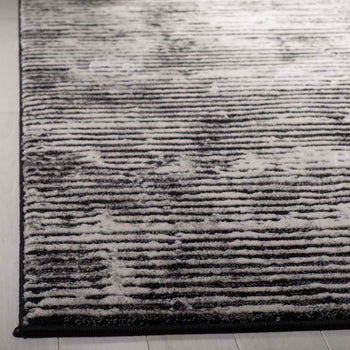 The rug's visually captivating pattern features an array of black and grey hues, married in a harmonious design that mimics the ebb and flow of a painter's brushstrokes. This bold and modern aesthetic is versatile enough to complement a variety of decors, from sleek and modern to more traditional spaces.