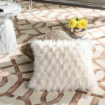 Wispy tufts of creamy white faux fur in layers of silky smooth texture and radiant color flow across the front and back of this Luxe feather pillow. A sensation for the senses, this fashion smart accent pillow brings distinctive styling and comforting dimension to solid colored upholstered sofas, chairs or bedroom headboards. A tastefully hidden zipper adds an easy care element to this sublime home furnishing accessory