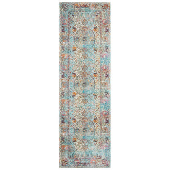 Hailing from the rich cultural tapestry of Turkey, this rug features a serene turquoise and aqua color palette, evoking the tranquil waters of the Aegean Sea. Its transitional style marries classic design with modern aesthetics, making it an ideal choice for both traditional and contemporary interiors.