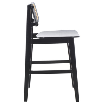 Introducing our LUZ Cane Counter Stool - the epitome of contemporary style and organic beauty. Crafted with a unique blend of solid wood and natural rattan, this counter stool is designed to introduce an element of elegance and warmth into your home decor. The natural rattan seat is masterfully woven into intricate patterns, providing a luxuriously comfortable seating experience. This is beautifully contrasted with the set of black legs, highlighting a sleek and modern silhouette. Radiating a rustic charm combined with a modern flair, the LUZ Cane Counter Stool in Natural Rattan with Black Legs is the essence of functional beauty. Transform your interior with this marvelous addition, proving that aesthetically appealing furniture can also be remarkably comfortable and durable. Invest in the LUZ Cane Counter Stool and elevate your living space with a taste of nature's finest.
