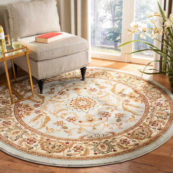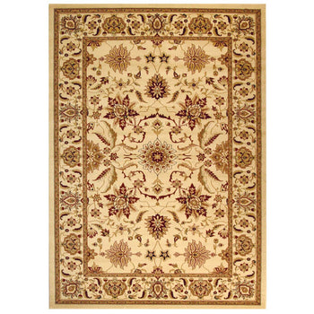 The sophisticated ivory-on-ivory color palette features intricate patterns that draw inspiration from timeless designs, all beautifully contained within a majestic border. Each detail is rendered with clarity and contrast, offering a visual feast for the eyes and a soft, inviting texture for the feet.