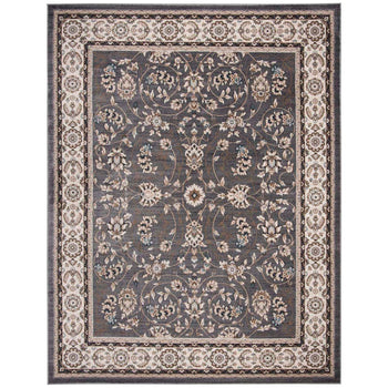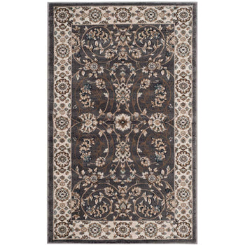 Elevate your home with the timeless elegance of our Power Loomed Grey/Cream Area Rug. Designed to enrich any room with its classic charm, this small rectangular rug (3'-3" X 5'-3") features a sophisticated pattern that seamlessly blends traditional aesthetics with a modern color palette. The intricate design showcases floral motifs and ornamental details in shades of grey and cream, creating a versatile piece that complements both contemporary and classic interiors.