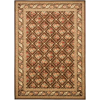 Crafted with the utmost precision using a power-loomed technique, this 100% polypropylene rug boasts durability and ease of maintenance, making it an ideal choice for high-traffic areas in your home or office. The rich brown hues create a harmonious backdrop for the intricate pattern, captured perfectly regardless of the image size, showcasing a traditional floral motif that exudes classic charm.