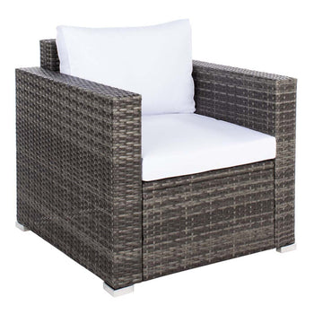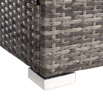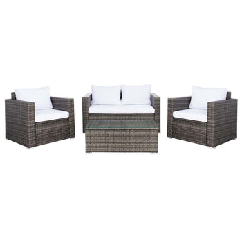 This Machie Living Set perfectly pairs clean lined geometry with rich, flowing texture, elevating your outdoor decor to new heights of sophistication. Machie's grey woven frames are beautifully juxtaposed with plush matching cushions, and its glass topped coffee table provides ample room for drinks or tapas.