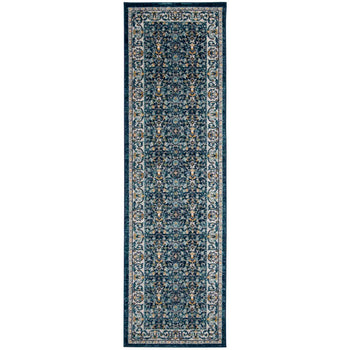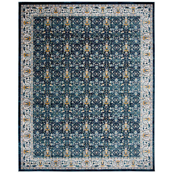 Whether you're looking to accent your living room, bedroom, or study, this rug brings both function and elegance to your space. Its antique-inspired pattern imbues your home with a touch of history while modern construction techniques offer contemporary reliability. Make a statement with this gorgeous navy and creme rug that harmoniously blends tradition with modern living.