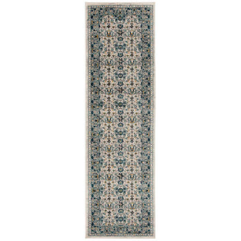 Whether you're looking to accent your living room, bedroom, or study, this rug brings both function and elegance to your space. Its antique-inspired pattern imbues your home with a touch of history while modern construction techniques offer contemporary reliability. Make a statement with this gorgeous navy and creme rug that harmoniously blends tradition with modern living.