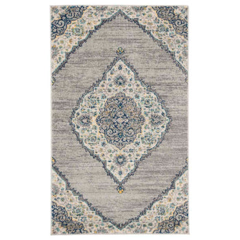 Elevate your home with the timeless elegance of our Transitional Light Grey/Blue Area Rug. Expertly crafted in Turkey, this small rectangular rug, measuring a versatile 3' X 5', brings a touch of sophistication to any room. The rug's height sits comfortably at 1/2", making it a cozy addition to your space without compromising on ease of placement under furniture and doors.