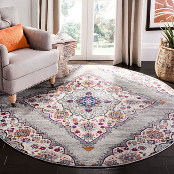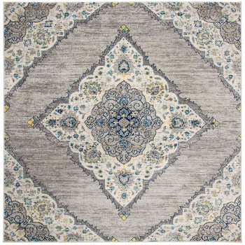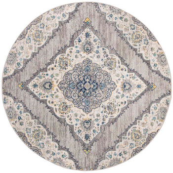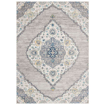 Featuring a harmonious blend of light grey and blue hues, the design integrates traditional patterns with a modern aesthetic, making it an ideal choice for both contemporary and classic interiors. The intricate details captured in the image reflect the rug's exquisite pattern, characterized by ornate shapes and delicate floral accents, emanating a sense of tranquility and charm.