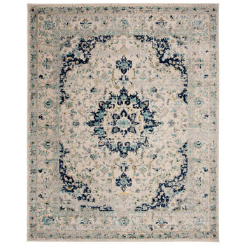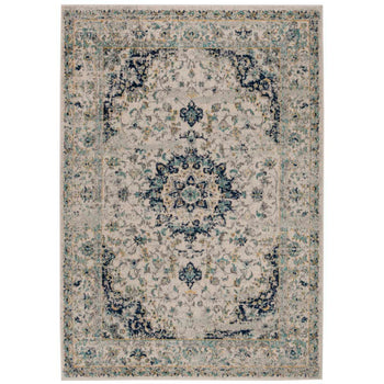Our rug's enchanting pattern features intricate designs and motifs, imparting a timeless allure to any room. The central medallion, surrounded by florals and bordered with ornate detailing, captures the eye and invites a sense of history and artistry into your home.