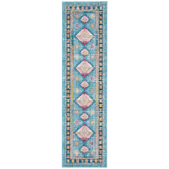 Elevate your space with the enchanting allure of our Transitional Runner Area Rug, a harmonious blend of Light Blue and Fuchsia tones. Expertly crafted in Turkey, this 2'-2" X 8' runner rug features a plush polypropylene pile construction for lasting comfort and durability. The rug's power-loomed technique ensures precise design reproduction and a resilient texture, perfect for high-traffic areas.