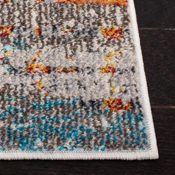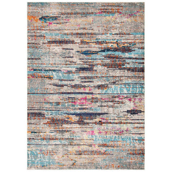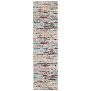 Boasting a pile height of 3/8", this contemporary round rug offers a touch of luxury underfoot, while its slip-resistant design ensures safety and stability. The abstract blend of ivory, bold strokes, and a multi-colored palette creates an artistic expression that effortlessly complements modern interiors.
