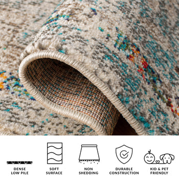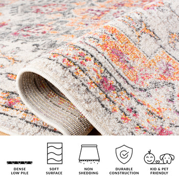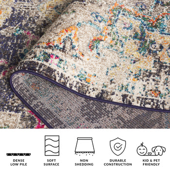Featuring a composition of 57% Polypropylene, 30% Cotton, and 13% Polyester, this area rug is designed to withstand the hustle and bustle of everyday life while retaining its vivid hues and captivating pattern. The expert blend of materials not only offers a plush texture but also adds to the rug's long-lasting nature. Each fiber has been selected for its strength, softness, and ability to hold color, resulting in a product that's as durable as it is beautiful.