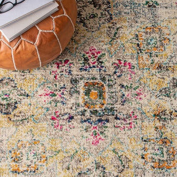 The rug's exceptional design draws inspiration from transitional motifs, combining traditional patterns with modern aesthetic influences. The tones are arranged in a symmetrical composition that features floral and geometric shapes, bringing an artful harmony to your floor. Whether placed in a living room, dining area, or bedroom, this rug will become an instant focal point, sparking conversations and compliments alike.