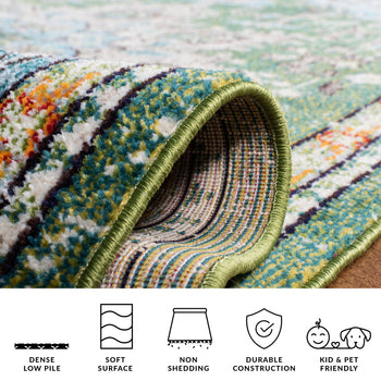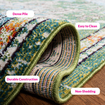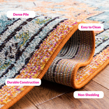 Featuring a composition of 57% Polypropylene, 30% Cotton, and 13% Polyester, this area rug is designed to withstand the hustle and bustle of everyday life while retaining its vivid hues and captivating pattern. The expert blend of materials not only offers a plush texture but also adds to the rug's long-lasting nature. Each fiber has been selected for its strength, softness, and ability to hold color, resulting in a product that's as durable as it is beautiful.