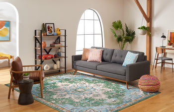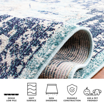 Transform your living space with a touch of exotic elegance using our captivating transitional-style area rug, now available in an expansive size. This masterpiece is meticulously crafted in Turkey, utilizing advanced power-loomed techniques that ensure exceptional durability and an intricate level of detail. The bold serene color palettes emerge beautifully from the rug's 3/8" pile height, creating a sumptuous underfoot feel that's both luxurious and slip resistant.