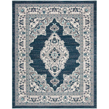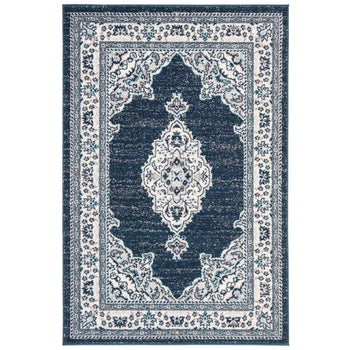 Introducing our exquisite 3' x 5' small rectangular area rug?a perfect blend of traditional charm and contemporary craftsmanship. Emanating elegance in a rich cream and navy color palette, this rug features intricate patterns that pay homage to classic design, inviting a sense of history and sophistication into your space.
