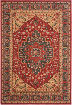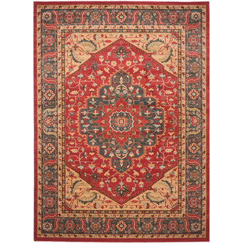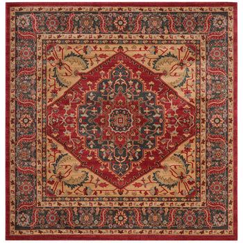 Featuring a traditional pattern that exudes sophistication, the intricate design details and vibrant color palette captured in this image are a testament to the unparalleled craftsmanship of this piece. Bold reds are elegantly complemented by deep navy accents, and hints of golden hues create an inviting warmth that enriches any space.