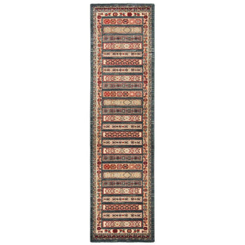 Crafted in Turkey using a power-loomed technique, the rug showcases a beautiful pattern reminiscent of traditional designs. Polypropylene construction ensures durability and ease of maintenance, making it an ideal addition to high-traffic areas. The rich navy and creme palette is accentuated by intricate motifs and bordered detail, adding depth and character to the piece.