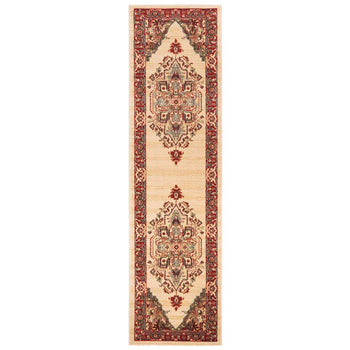 Elevate your space with the timeless elegance of our Traditional Style Runner Rug. Expertly crafted in Turkey, this rug is an exquisite blend of classic allure and contemporary craftsmanship. The ivory creme base is beautifully contrasted by bold red accents, creating a rich and inviting palette that will warm any hallway, entryway, or narrow space in need of an accent.