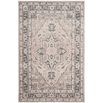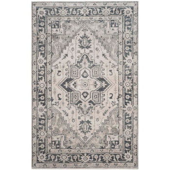 The rug features a sophisticated pattern that combines traditional motifs with a modern color palette, resulting in a refined look that complements both contemporary and classic interiors. The graceful floral and geometric designs in understated grey are beautifully offset by the subtle ivory background, adding depth and interest to your floors.