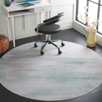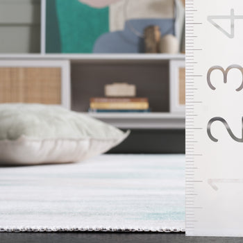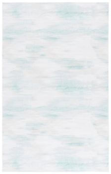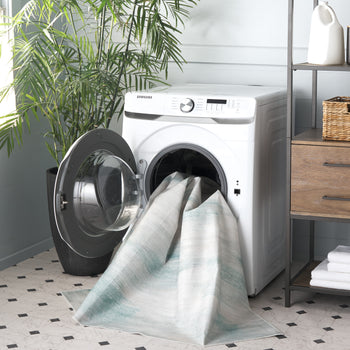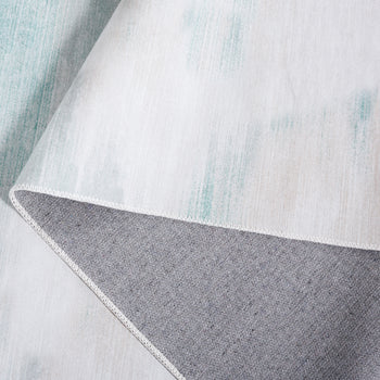 The rug's pattern is a serene display of ivory and green hues, with soft brushstrokes that create a tranquil, watercolor effect. Its washable nature ensures easy maintenance, and the slip-resistant quality means safety and comfort underfoot are prioritized in high-traffic areas.